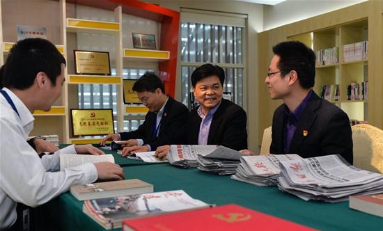 崔根良(右二)和黨員們一起學(xué)習(xí)交流 資料圖