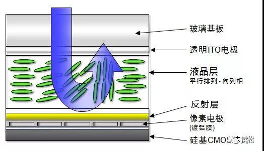 想要光攜帶信息傳輸向遠(yuǎn)方,需要對(duì)其進(jìn)行編碼??臻g光調(diào)制器(LCOS-SLM)就是可以通過(guò)相位調(diào)制來(lái)實(shí)現(xiàn)這一操作的元件。待編碼的激光束穿過(guò)SLM透明的玻璃基板層和ITO電極層,到達(dá)液晶層完成相位的調(diào)制(電壓→液晶分子排列方向→折射率→光程→相位)后,經(jīng)過(guò)反射面的反射進(jìn)行輸出。這時(shí)候的光,就已經(jīng)是滿載信息的了。