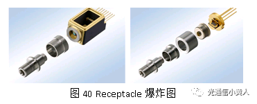 對(duì)于單模類光模塊,LC跳線頭和OSA之間通過(guò)Receptacle進(jìn)行機(jī)械連接。Receptacle可以分為Z環(huán)和光纖適配器兩個(gè)部件。Receptacle和box或者TO can之間是通過(guò)激光調(diào)整焊接起來(lái)的。光纖適配器內(nèi)有陶瓷插芯,在焊接前需要將光耦合到纖芯中(接受端類似),“調(diào)整”的意思就在于此了。激光調(diào)整焊接的英文名叫l(wèi)aser welding。