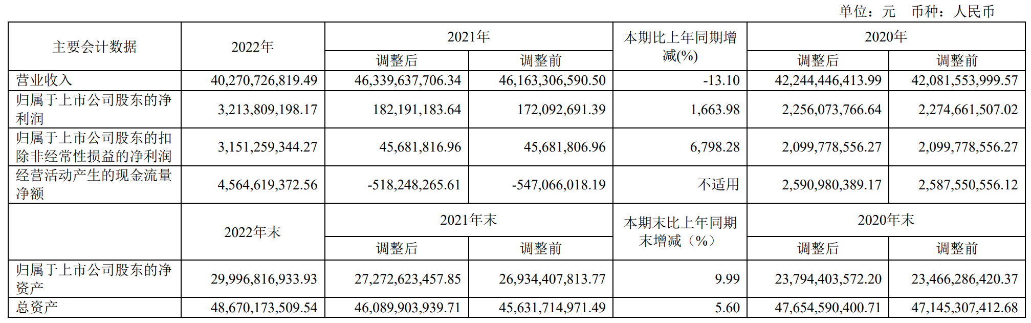 ICC訊 4月25日,江蘇中天科技股份有限公司(簡稱中天科技)發(fā)布2022年年度報(bào)告,報(bào)告期內(nèi)公司實(shí)現(xiàn)現(xiàn)營業(yè)收入 402.71 億元,受剝離商品貿(mào)易業(yè)務(wù)影響,同比下降 13.10%;實(shí)現(xiàn)歸屬于母公司凈利潤 32.14 億元,同比增長 1663.98%。
