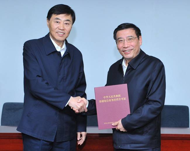 工業(yè)和信息化部部長苗圩出席頒證會并頒發(fā)許可證。工業(yè)和信息化部副部長陳肇雄、中國電信集團(tuán)有限公司董事長楊杰、中國移動通信集團(tuán)有限公司董事長尚冰、中國聯(lián)合網(wǎng)絡(luò)通信集團(tuán)有限公司董事長王曉初,以及工業(yè)和信息化部相關(guān)司局負(fù)責(zé)人參加會議。