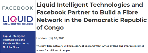 ICC訊(編譯:Nina)據(jù)外媒 Light Reading 消息,Liquid Intelligent Technologies(前身為 Liquid Telecom)和 Facebook 宣布建立合作伙伴關(guān)系,將在剛果民主共和國(guó) (DRC) 建立一條廣泛的長(zhǎng)途和城域光纖網(wǎng)絡(luò),該網(wǎng)絡(luò)最終將連接到計(jì)劃中的 2Africa 海底電纜。