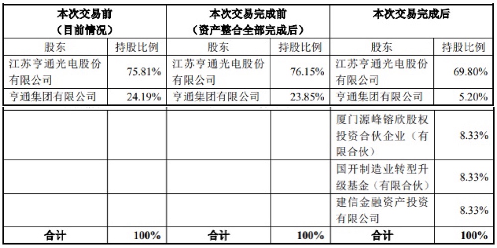 ICC訊 (編輯:Nicole) 江蘇亨通光電股份有限公司(以下簡(jiǎn)稱“亨通光電”或“公司”)公告稱,國(guó)開制造業(yè)基金擬以現(xiàn)金增資方式對(duì)控股子公司江蘇亨通海洋光網(wǎng)系統(tǒng)有限公司(以下簡(jiǎn)稱“亨通海洋”)增資5億元,完成增資后將獲得亨通海洋 8.33%的股權(quán)。同時(shí)廈門源峰與建信投資擬各自以5億元的對(duì)價(jià)分別受讓亨通集團(tuán)有限公司(以下簡(jiǎn)稱“亨通集團(tuán)”)所持有的亨通海洋4243.70萬(wàn)元的注冊(cè)資本,對(duì)應(yīng)本次交易完成后在全面稀釋基礎(chǔ)上的亨通海洋 8.33%股權(quán)。交易完成后,亨通海洋仍為公司控股子公司。
