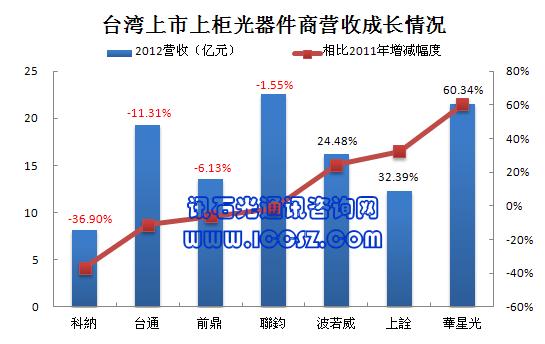 從2011年到2012年間,臺灣上市上柜的光通訊公司不少,比如VCESEL及PIN二極管廠商光環(huán)科技在2011年3月24日上柜、美國波長選擇開關(guān)(WSS)廠商科納在2011年8月31日上市、光纜及FTTH相關(guān)配件廠商臺通光電在2011年9月19日上市、激光二極管和TO-CAN廠商華星光在2011年12月12日上柜,以及光無源器件廠商波若威在2012年12月3日上柜。