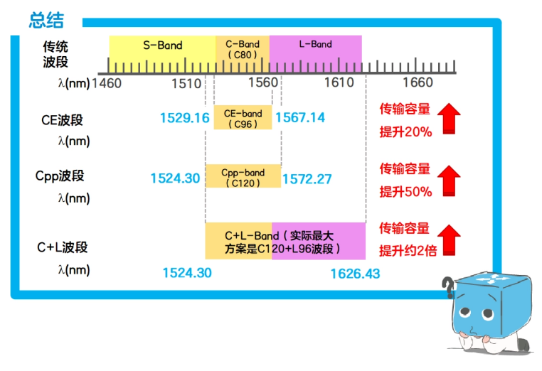 近期,光網(wǎng)絡(luò)涌現(xiàn)出波段新秀 CE、Cpp、C+L 波段,為擴(kuò)展光網(wǎng)絡(luò)傳輸能力增磚加瓦。