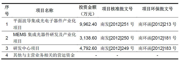 博創(chuàng)科技招股說明書顯示,本次募集資金主要用于三個方面:一是平面波導(dǎo)集成光電子器件產(chǎn)業(yè)化,需資金9962.40萬元;二是MEMS集成光器件研發(fā)及產(chǎn)業(yè)化,需資金3138.6萬元;三是研發(fā)中心項目,需資金4792.60萬元。若實際募集資金不足,在不改變擬投資項目的前提下,董事會可對上述項目的擬投入募集資金金額進(jìn)行調(diào)整,不足部分由公司自行籌措資金解決。
