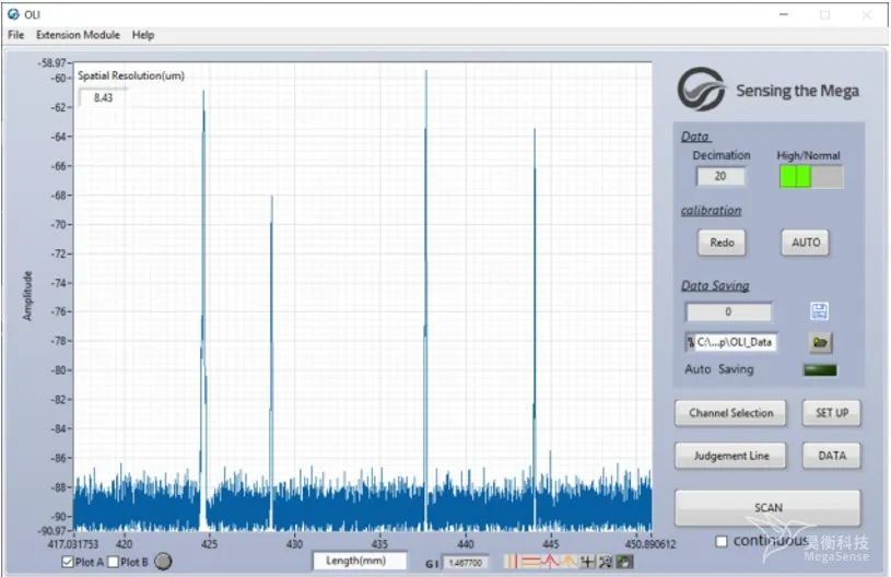 使用OLI測試能快速評估出硅光芯片耦合質(zhì)量,并精準(zhǔn)定位硅光芯片內(nèi)部裂紋位置及回?fù)p信息。OLI以亞毫米級別分辨率探測硅光芯片內(nèi)部,可廣泛用于光器件、光模塊損傷檢測以及產(chǎn)品批量出貨合格判定。