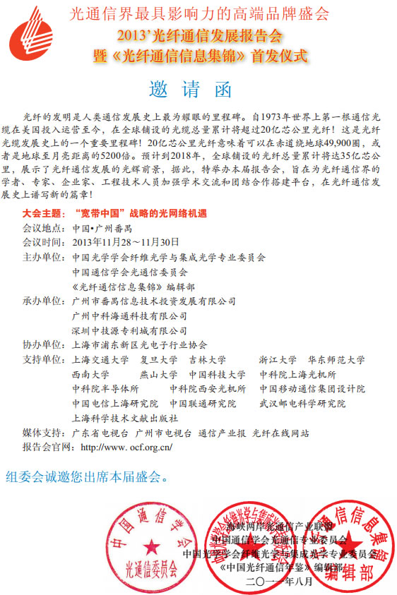 學(xué)者、專家、企業(yè)家、工程技術(shù)人員加強(qiáng)學(xué)術(shù)交流和團(tuán)結(jié)合作搭建平臺(tái),在光纖通信發(fā)