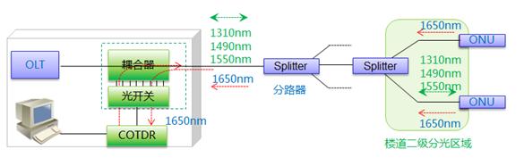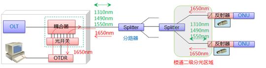 OTDR發(fā)出1650nm的維護(hù)光;