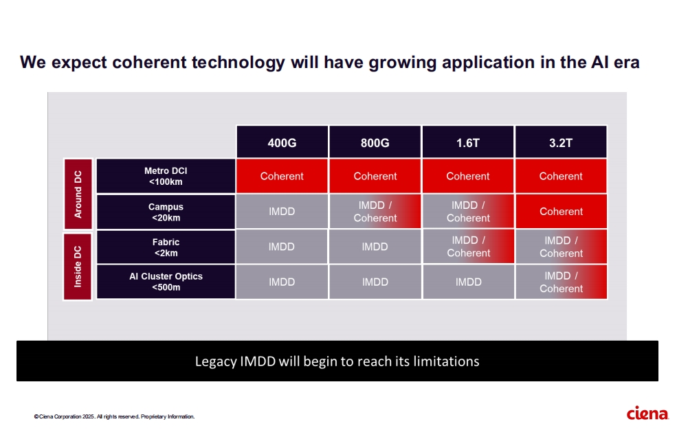 此外,Ciena 還強調(diào)了其在光學技術(shù)領(lǐng)域的領(lǐng)先地位。公司預計相干技術(shù)在AI時代將有更廣泛的應用,并且正在通過創(chuàng)新產(chǎn)品來滿足市場需求。