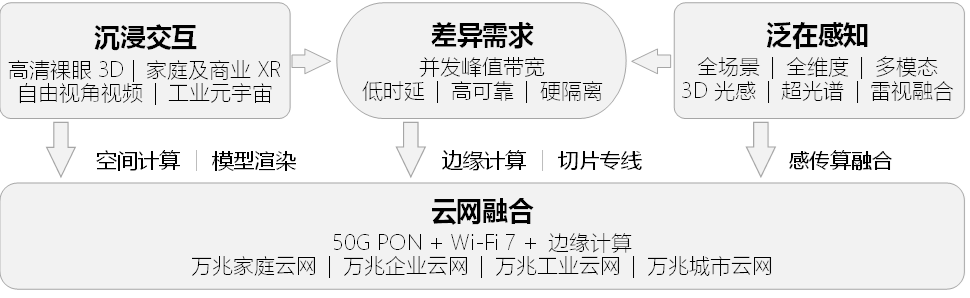 進(jìn)入全光萬(wàn)兆時(shí)代,用戶(hù)將可以在家中體驗(yàn)到裸眼3D顯示、自由視角觀(guān)影及直播、極速云存儲(chǔ)(NAS)和極速云游戲等數(shù)字服務(wù)。企業(yè)通過(guò)50G PON可以實(shí)現(xiàn)Wi-Fi 7回傳,滿(mǎn)足如混合現(xiàn)實(shí)(MR)等新型終端并發(fā)使用和無(wú)障礙在線(xiàn)協(xié)作,隨時(shí)調(diào)用云端渲染等邊緣算力服務(wù),提升使用體驗(yàn)。全光萬(wàn)兆還可以增強(qiáng)城市數(shù)字基礎(chǔ)設(shè)施,發(fā)揮綜合承載能力,提供高可靠的專(zhuān)網(wǎng)服務(wù),支持城市智慧綜合桿的建設(shè)。