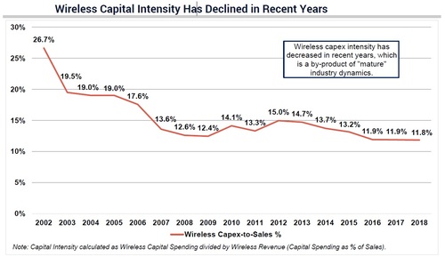 MoffettNathanson的華爾街分析師預(yù)測,2019年美國電信和有線電視運(yùn)營商的總資本支出將年增3.3%至715億美元。然而,該公司表示,資本支出將在2020年下滑2.4%至698億美元,然后在2022年下滑至668億美元。分析師表示,更高支出--部署毫米波5G所必需--還要等待幾年之后更可信的商業(yè)案例,或者更經(jīng)濟(jì)可行的中頻帶頻譜。