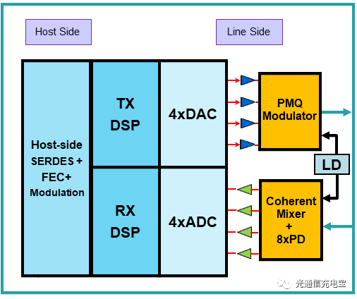圖1. 相干光模塊(單盤)功能示意圖