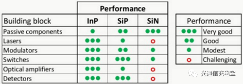 InP平臺(tái)更擅長做有源器件,而SiP在無源器件上表現(xiàn)更出色。SiP在產(chǎn)量和成本上占優(yōu)勢,但在帶寬和性能上可能并不如InP。InP平臺(tái)可以把激光器與CDM、ICR集成/封裝起來,而SiP可以把DSP和不帶激光器的PIC集成/共封裝在一起。SiP有很多優(yōu)點(diǎn),但其不可忽視的缺點(diǎn)有二:一是與光纖耦合損耗大,二是本身不能發(fā)光(最近MIT博士做的LED距離實(shí)用光通信應(yīng)用尚早)。與其說誰取代誰,不如說有些時(shí)候可能需要考慮如何將兩者的優(yōu)點(diǎn)結(jié)合起來,比如Si+X,混合集成,讓成本和性能都盡可能優(yōu)化。