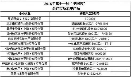 2016年11月24日,2016中國集成電路產(chǎn)業(yè)促進大會在成都成功召開。會議評選出中國芯的諸多知名產(chǎn)品獎項,據(jù)悉本屆評選已經(jīng)是第11屆。