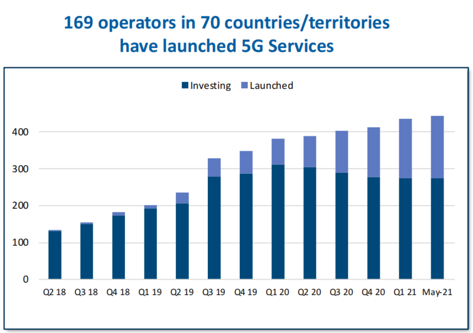 GSA:截止2021年5月全球5G商用網(wǎng)絡(luò)已達(dá)169個