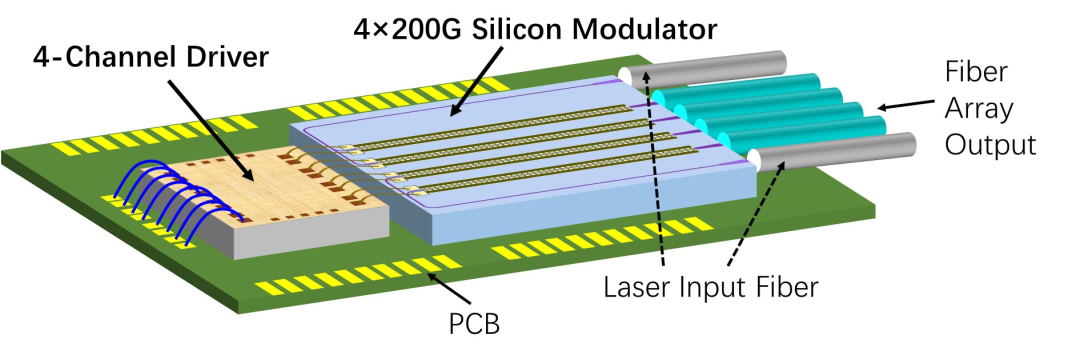 800 Gb/s硅光集成發(fā)射機(jī)示意圖