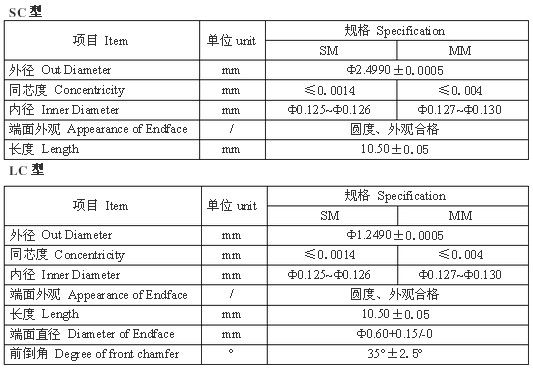 附錄二:常規(guī)插芯技術(shù)標(biāo)準(zhǔn)