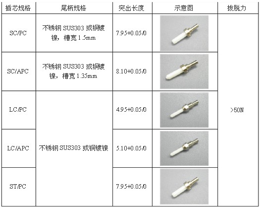 1)常規(guī)插芯規(guī)格分類(型號規(guī)格分類)