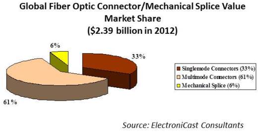 【訊石光通訊咨詢網(wǎng)】 據(jù)ElectroniCast Consultants公布的最新報告顯示,2012年光纖連接器及所有類型的機械接頭市場的銷售額達23.9億美元。而數(shù)據(jù)中心上的應用就占了一半以上,ElectroniCas的市場調(diào)研機構(gòu)表示,到2017年將看到電信市場的大幅增長。