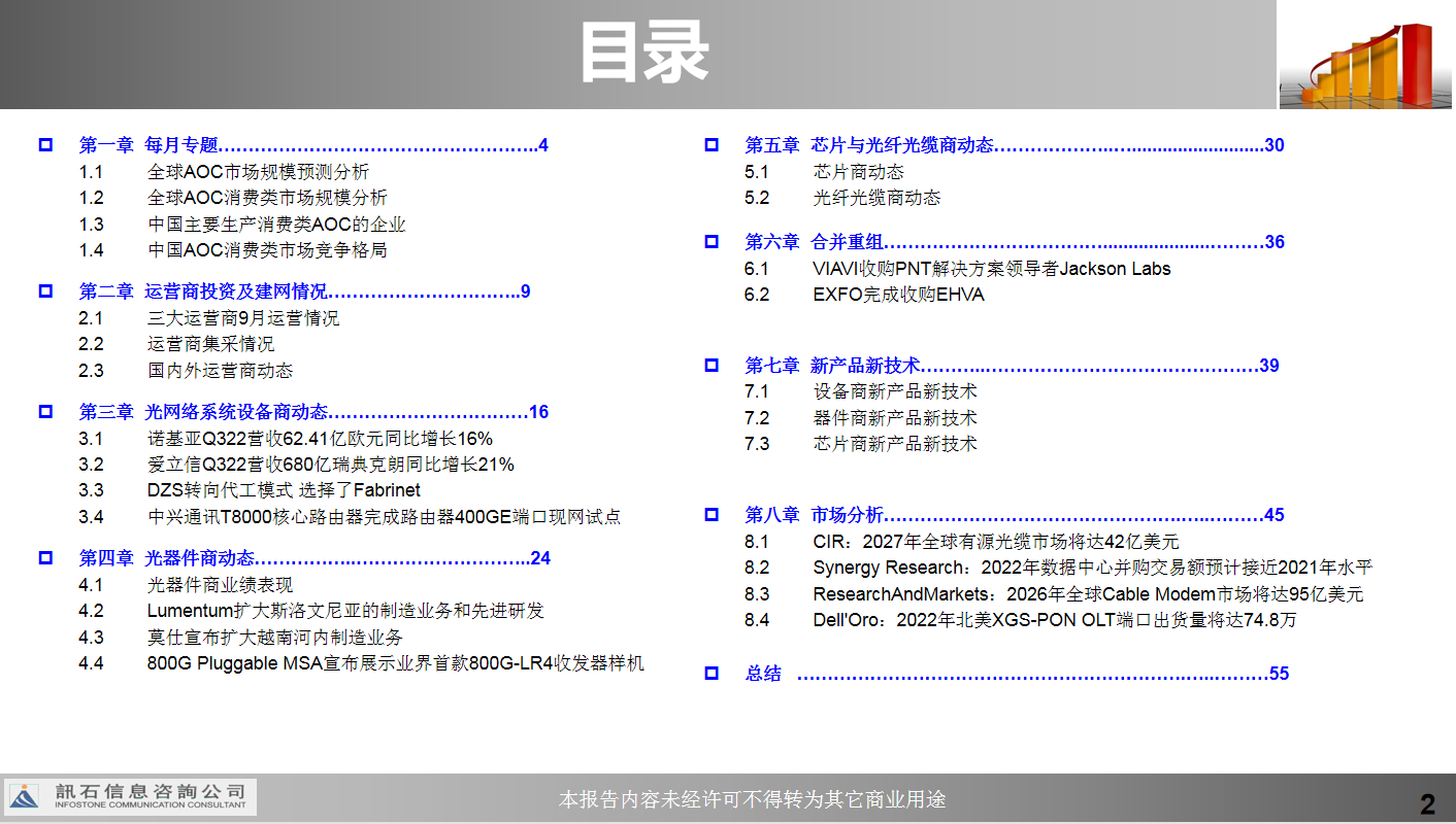 ICCSZ訊 訊石 2022年10月《全球光通訊市場(chǎng)動(dòng)態(tài)》專題月報(bào)出刊,會(huì)員公司可以通過(guò)網(wǎng)站登錄下載或者郵件接收。
