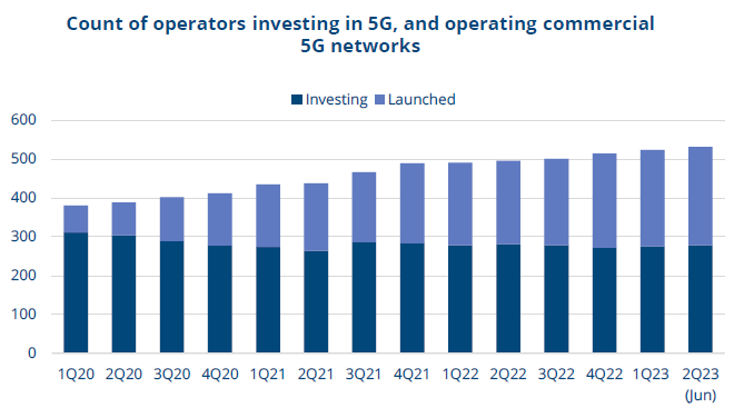 116家運(yùn)營商正在投資用于公共網(wǎng)絡(luò)的獨(dú)立5G,包括那些評估或測試、試點(diǎn)、規(guī)劃或部署的運(yùn)營商,以及那些已經(jīng)推出獨(dú)立5G網(wǎng)絡(luò)的運(yùn)營商。