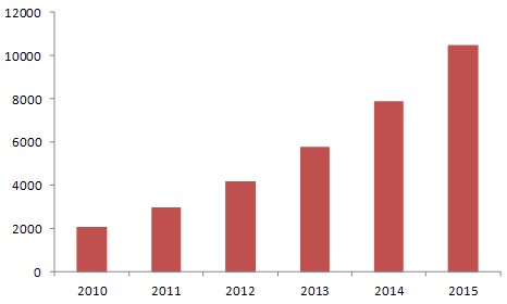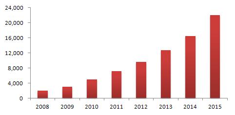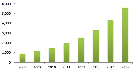 因此預計到2015年,全球光纖適配器需求量將增長至23億只,年增長率在21%左右。其中,中國市場光纖適配器需求量預計將增長至7億只,其在全球市場中的占比將達30.4%。
