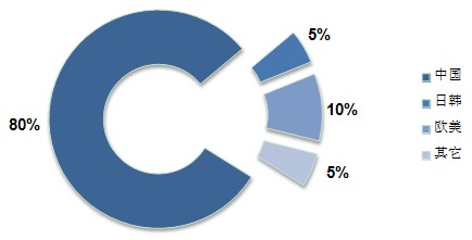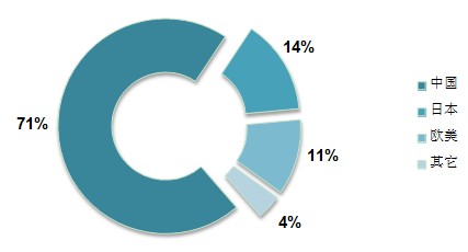 從目前全球生產分布來看,約有71%的生產出自中國廠商,日本老牌廠商約占14%,歐美廠商占11%。