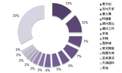 圖2 全球主要陶瓷套管廠商市場份額(按2011月出貨量)