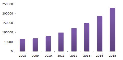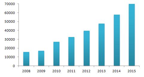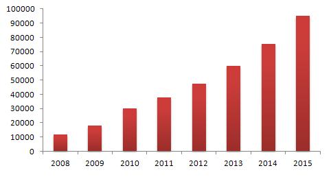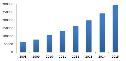 觀看過去三年全球及中國市場光纖適配器需求量走勢,由于2008年爆發(fā)的金融海嘯,引發(fā)2009年整體市場增速放緩,到2010年,在IP流量飛速增長刺激下,該市場恢復原有增長速度。