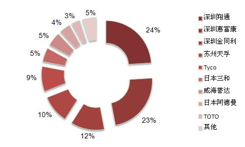 圖10 全球主要組件RECEPTACLE廠商份額