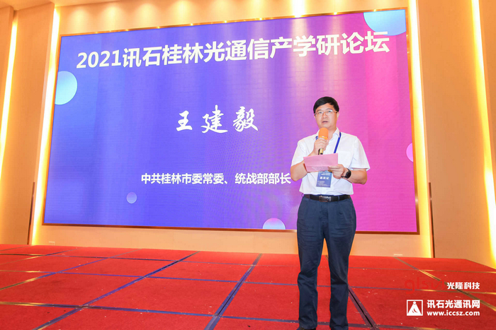 5月28日下午,論壇開場由中共桂林市常委、統(tǒng)戰(zhàn)部部長王建毅致辭,他表示,桂林是廣西的老工業(yè)化基地,近年來推出了三年新型工業(yè)計劃,未來桂林工業(yè)發(fā)展機會巨大。本地企業(yè)不斷發(fā)展壯大,2020年桂林電子信息產(chǎn)業(yè)創(chuàng)造了78.86億元收入,同比增長130.33%。未來離不開光通信的發(fā)展,歡迎企業(yè)落戶桂林,支持桂林發(fā)展。