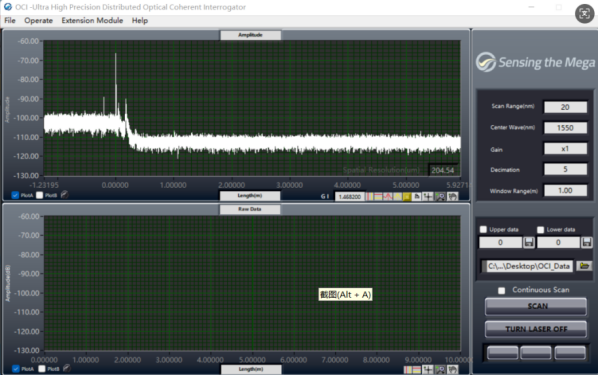 首先,使用我司1550nm波段的OCI設(shè)備,連接控制器輸入端連接頭,測(cè)試結(jié)果如下: