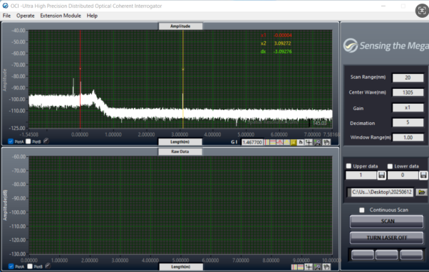 同樣的測(cè)試方式,使用1550nm波段的OCI設(shè)備進(jìn)行測(cè)量,結(jié)果如下: