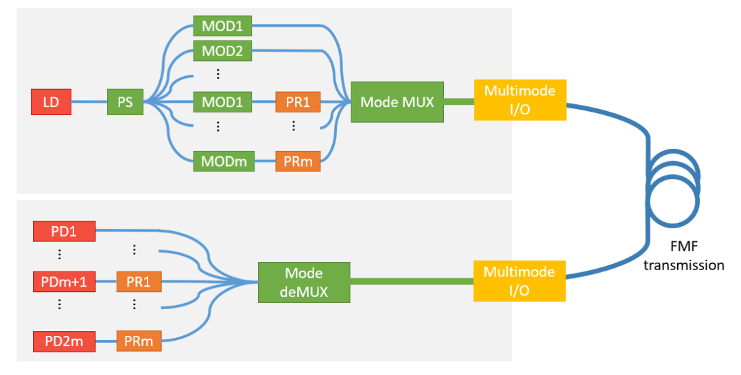 模分復(fù)用集成光通信傳輸系統(tǒng)的示意圖