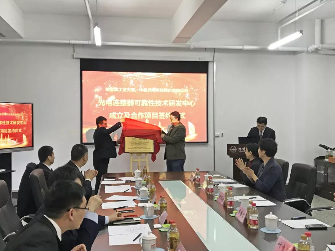 哈工大電器與電子可靠性研究所所長翟國富、副所長梁慧敏,中航光電中央研究院院長張磊、連接器研究所所長李紅星等參加了研發(fā)中心成立暨揭牌儀式。