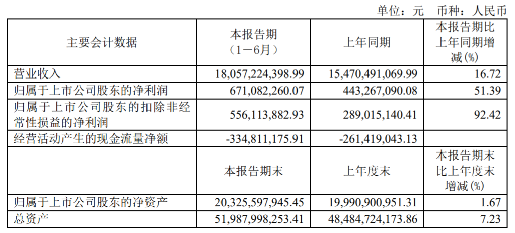 ICC訊 (編輯:Nicole) 江蘇亨通光電股份有限公司(以下簡稱“亨通光電”或“公司”)發(fā)布2021 年半年度報告稱:報告期內(nèi),公司實現(xiàn)營業(yè)收入 180.57 億元,同比增長 16.72%。公司實現(xiàn)歸屬于上市公司股東的凈利潤 6.71 億元,同比增長 51.39 %;實現(xiàn)歸屬于上市公司股東的扣除非經(jīng)常性損益的凈利潤同比增長 92.42%。