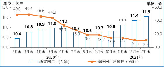 2020-2021年2月末物聯網終端用戶情況