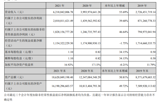 ICC訊 潮州三環(huán)(集團(tuán))股份有限公司(以下簡稱“三環(huán)集團(tuán)”或“公司”)發(fā)布2021年度業(yè)績報告稱:2021年度,公司實現(xiàn)營業(yè)收入621,804.20萬元,比上年同期增加55.69%;營業(yè)利潤229,452.76萬元,比上年同期增加37.59%;歸屬于母公司所有者的凈利潤201,081.14萬元,比上年同期增加39.68%,主要原因是受益于5G技術(shù)廣泛普及應(yīng)用、汽車電子及消費(fèi)電子的需求增長,疊加國產(chǎn)替代進(jìn)程不斷加速,被動元器件市場需求旺盛,行業(yè)景氣度較好,公司主要產(chǎn)品電子元件及材料、半導(dǎo)體部件銷售大幅增加,影響當(dāng)期利潤增加。公司營業(yè)成本318,650.95萬元,比上年同期增加63.18%,主要原因是隨著收入增加,營業(yè)成本相應(yīng)增加。