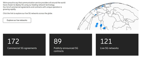 ICC訊 愛立信官網(wǎng)公布了其最新數(shù)據(jù):截止到目前,愛立信已經(jīng)在全球范圍內(nèi)獲得172個(gè)5G商用合同,其中,愛立信已經(jīng)和89家運(yùn)營商達(dá)成允許公示的5G商用合同,共在54個(gè)國家為121個(gè)正在運(yùn)行的5G商用網(wǎng)絡(luò)提供設(shè)備支持。