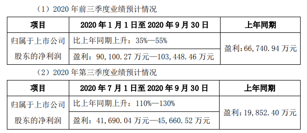 2020年前三季度業(yè)績的具體財務(wù)數(shù)據(jù)將在公司2020年第三季度報告中詳細(xì)披露。