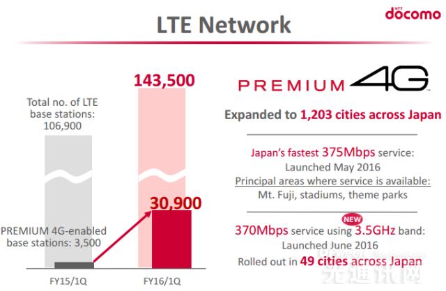 截至今年6月底,NTT Docomo公司LTE基站數(shù)量為14.35萬,其中包括3.09萬Premium 4G基站。