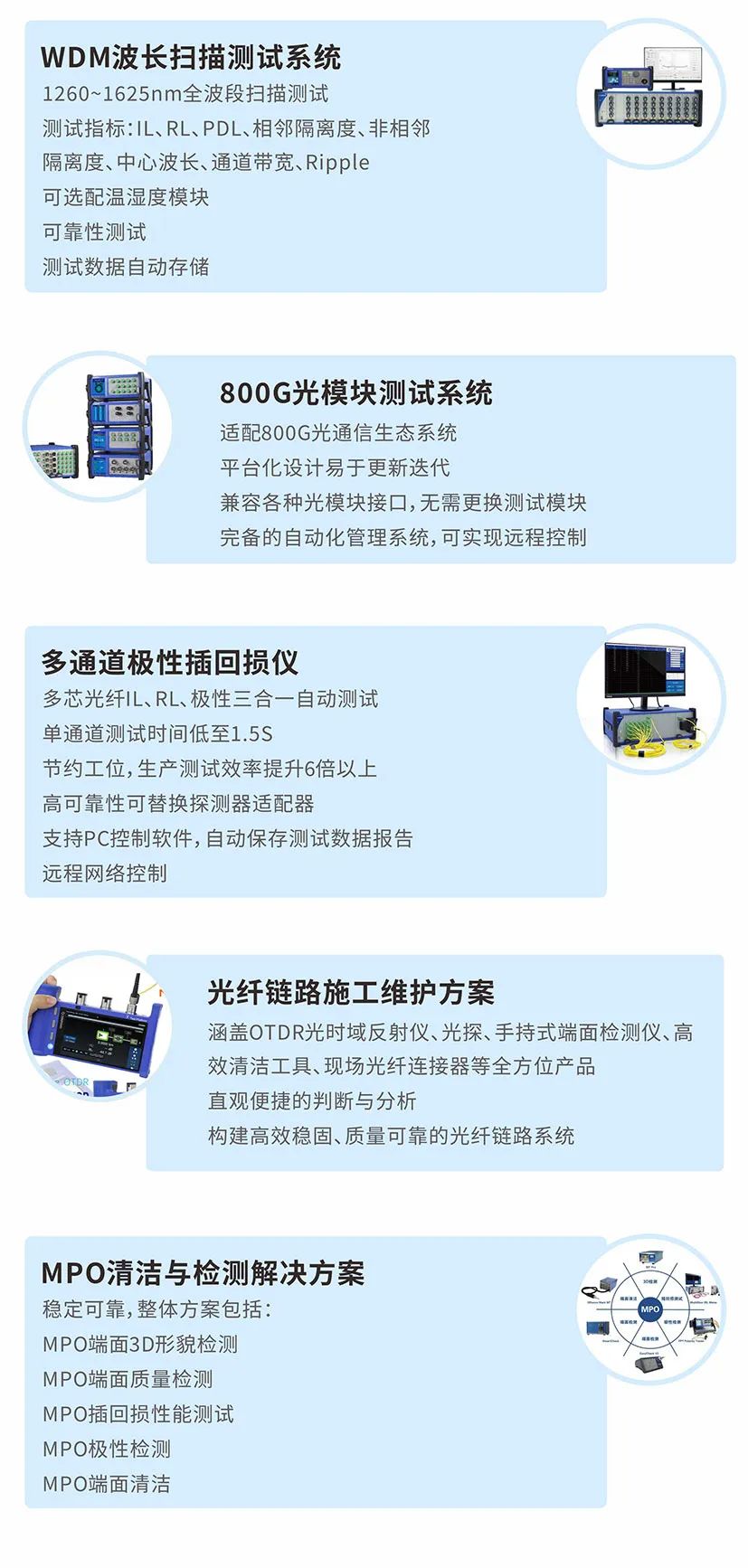 自2007年成立以來,秉承“想象、行動、創(chuàng)新、引領(lǐng)”的理念,已發(fā)展成為全球領(lǐng)先的光通信檢測解決方案供應(yīng)商,為全球客戶提供一流的光器件測試和光纖端面檢測解決方案和設(shè)備,建立了全球營銷和服務(wù)支持網(wǎng)絡(luò),已為全球5000多家客戶提供近百種光電檢測設(shè)備。