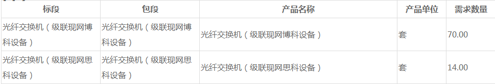 第1標(biāo)段:光纖交換機(jī)(級(jí)聯(lián)現(xiàn)網(wǎng)博科設(shè)備),采購(gòu)數(shù)量70臺(tái)。