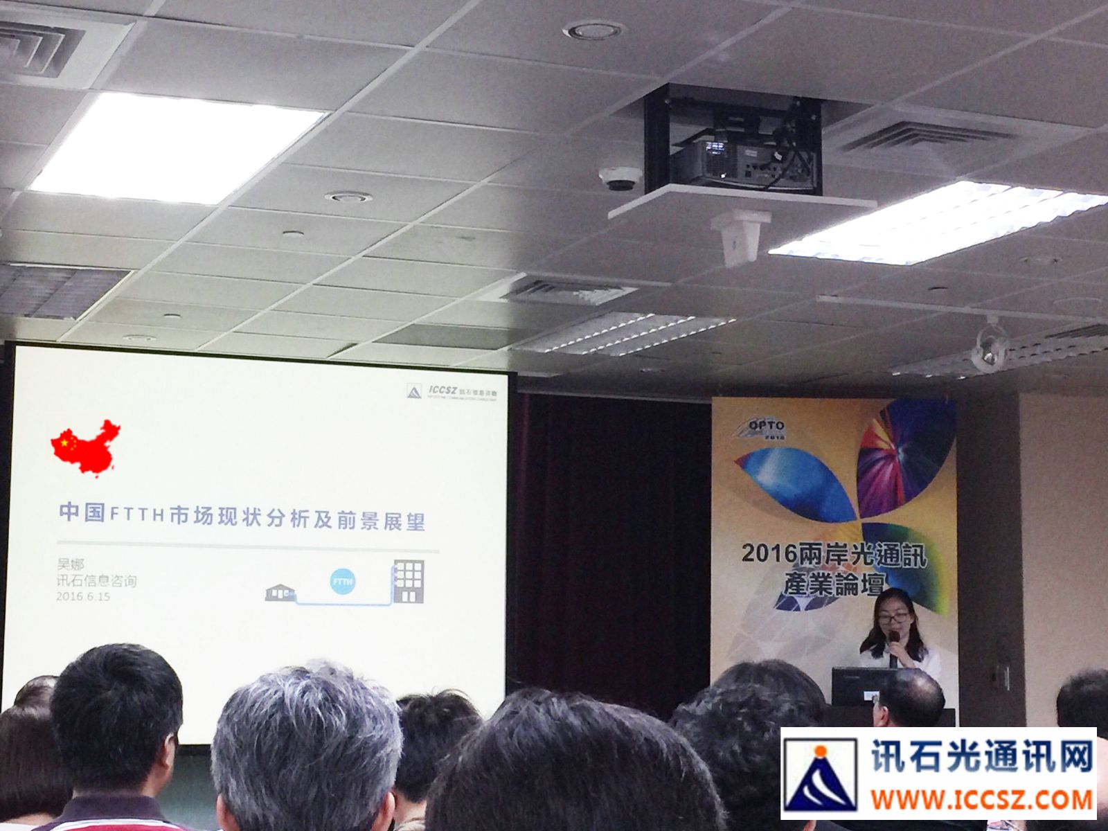 訊石的高級市場分析師吳娜為臺灣友人帶來了《全球及中國大陸光通訊市場》報告,拉開了會議演講序幕。