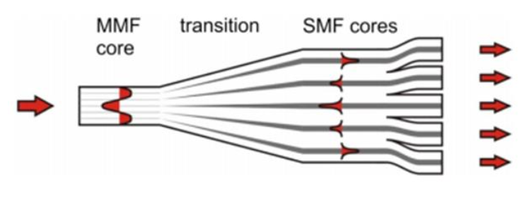 目前為止,已報道的光子燈籠主要有超快激光刻字光子燈籠、多芯光纖光子燈籠和光纖簇光子燈籠三大類,前兩類在單獨的波導輸入或輸出及與標準單模光纖連接時需要引入額外的設備或者增加光學接口,技術復雜并可能引起附加損耗。