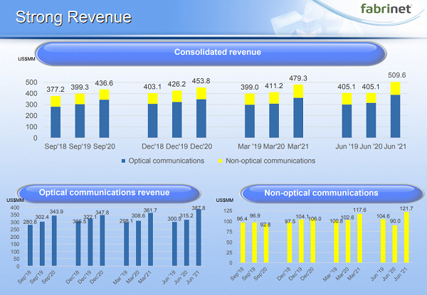 ICC訊(編譯:Nina)泰國曼谷,2021年8月16日--Fabrinet(紐約證券交易所代碼:FN),一家為復(fù)雜產(chǎn)品的原始設(shè)備制造商提供先進(jìn)光學(xué)封裝和精密光學(xué)、機(jī)電和電子制造服務(wù)的領(lǐng)先供應(yīng)商,今天公布了其截至2021年6月25日的2021財(cái)年第四季度和全年財(cái)務(wù)業(yè)績。