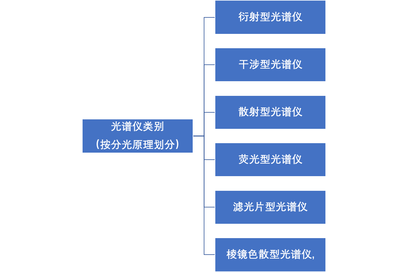 2、按分光技術(shù)原理劃分由于研發(fā)各種光譜儀時都面臨著一些共性的關(guān)鍵技術(shù),而分光技術(shù)恰恰是光譜儀要解決的核心問題。因此,根據(jù)分光技術(shù)原理的不同,可將其分為衍射型光譜儀、干涉型光譜儀、散射型光譜儀、熒光型光譜儀、濾光片型光譜儀和棱鏡色散型光譜儀,如圖2所示。
