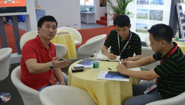 圖 | 王總(左一)在CIOE接受訊石采訪