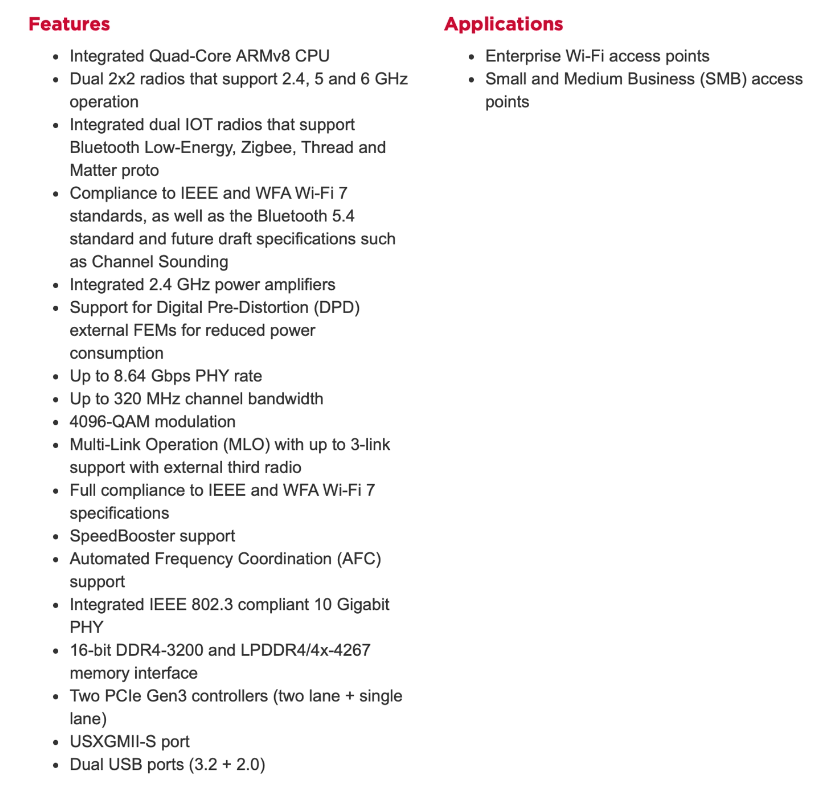 據(jù)報道,博通在去年推出了用于住宅 AP 的 BCM67263,用于企業(yè) AP 的 BCM43740 以及用于客戶端設(shè)備的 BCM4398。